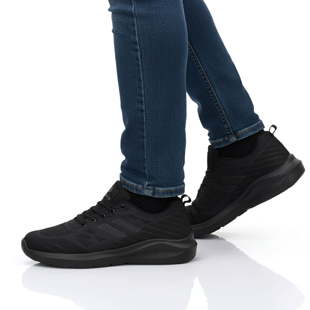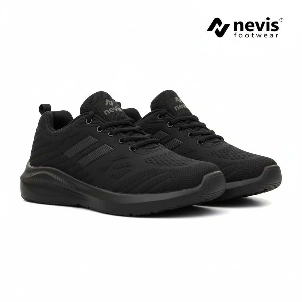 NEVIS Sepatu Pria Jumbo Big Size 39-49 Hugo Cross Sport Sneakers Casual Olahraga Running Lari Full Black Hitam Polos