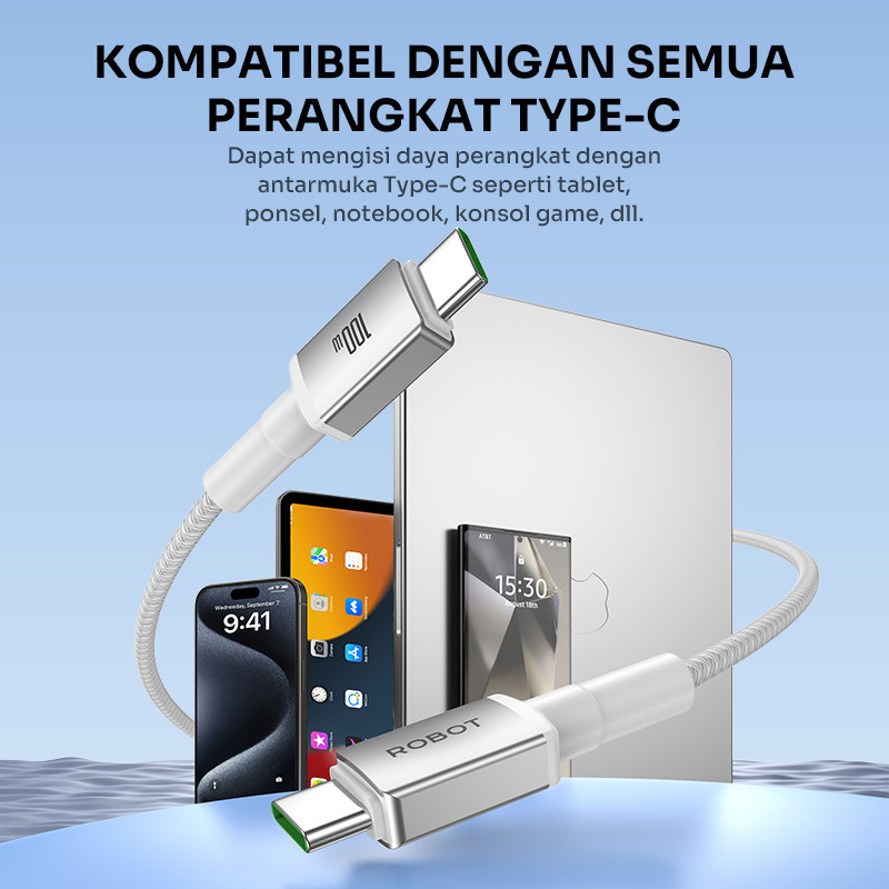 [Star] ROBOT Kabel Data Fast Charging Type C to Type C 100W Original RSPD120 - Garansi 1 Tahun
