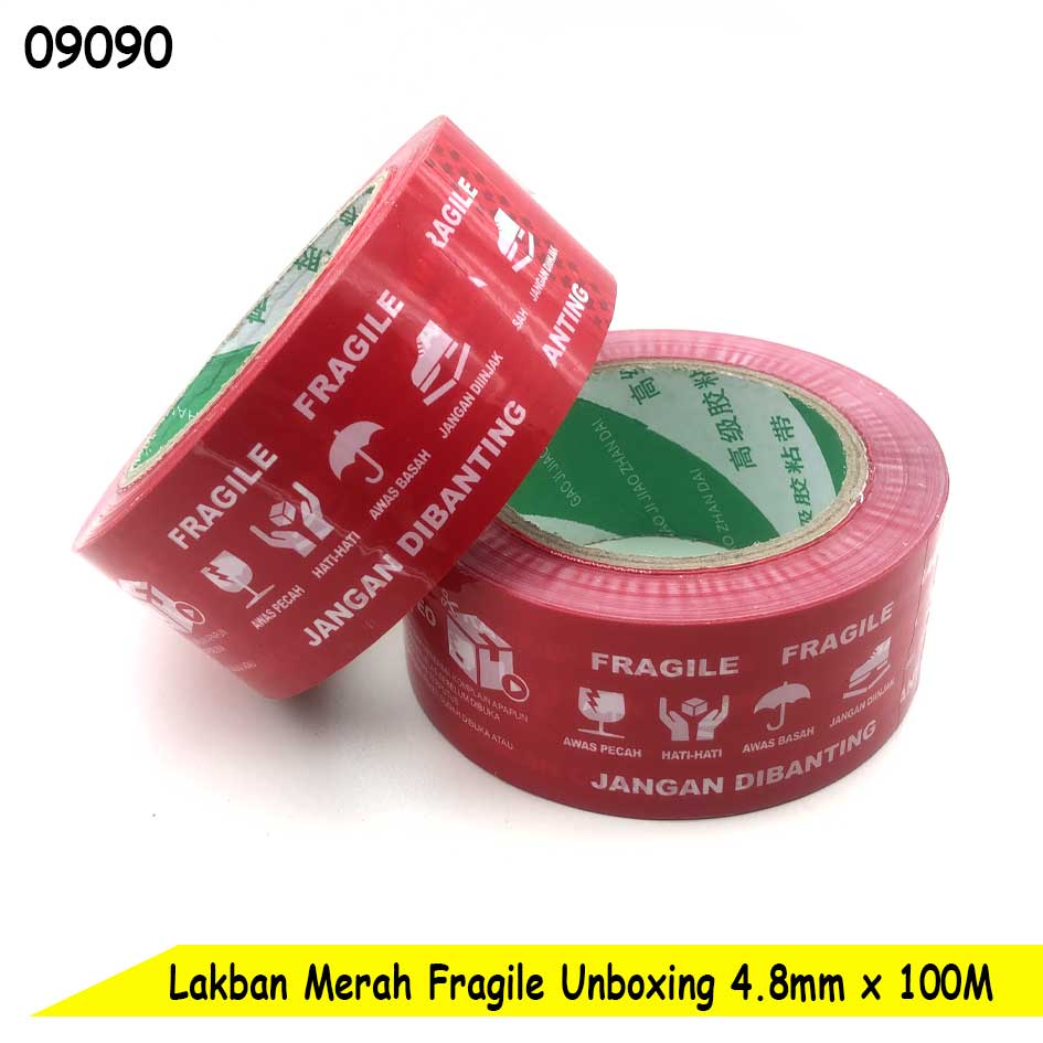 Lakban Merah Fragile Unboxing Bahasa Indonesia Isolasi Tape Isolatip
