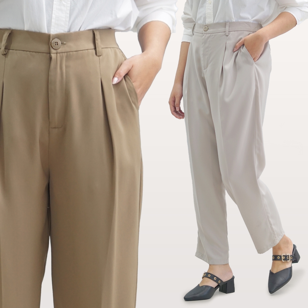 KLEOVA Jean Ankle Pants - Celana Panjang Wanita Highwaist Kerja Kantor - Straight Loose Pants