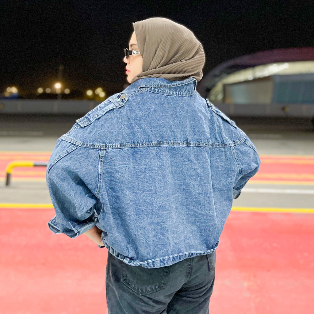 FLASH SALE Jaket Crop Jeans Oversize Blue Acid