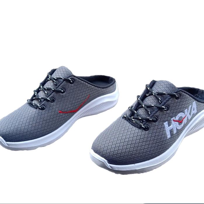 SEPATU SLOP PRIAWANITA ABU-BIRU HITAM PUTIH PREMIUM QUALITY SHOES SENDAL SANDAL ANTI SLIP SELOP - HOKA ABU, 38