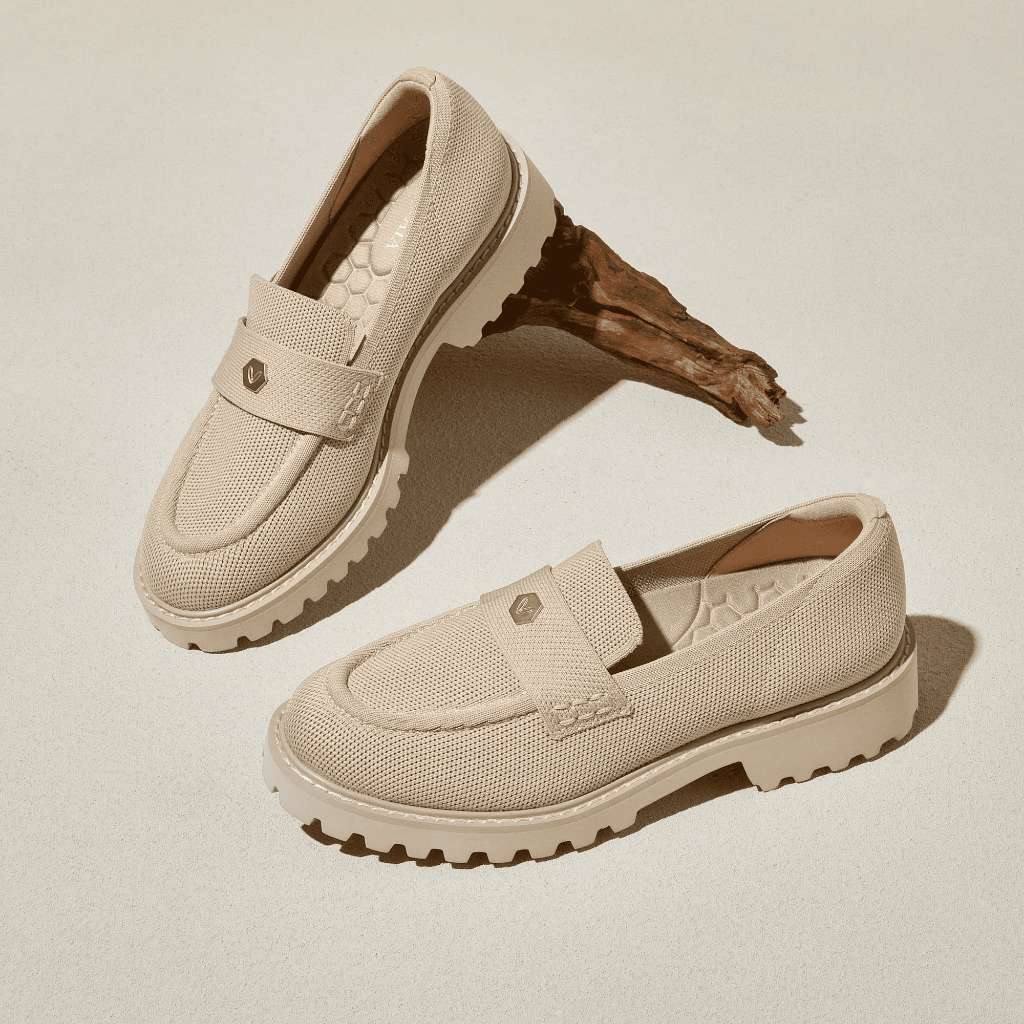 VIVAIA Sepatu Wanita Round-Toe Platform Chunky Heel Loafers (Francesca) - Nude Peach Ivory | Matcha