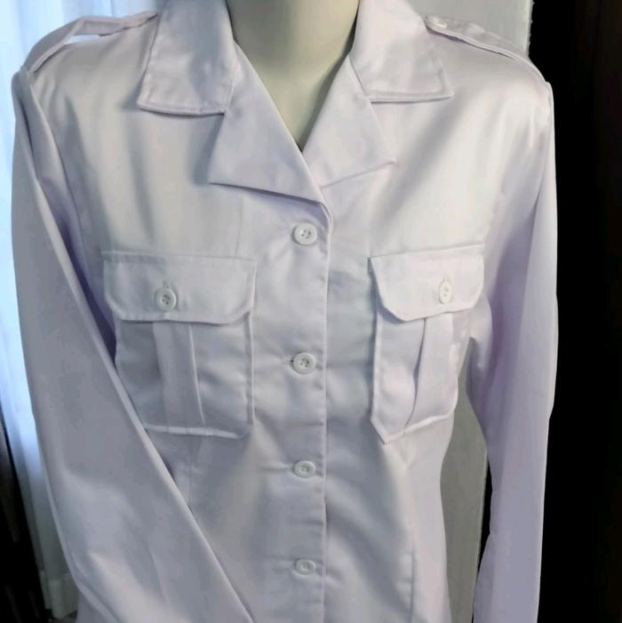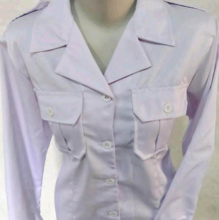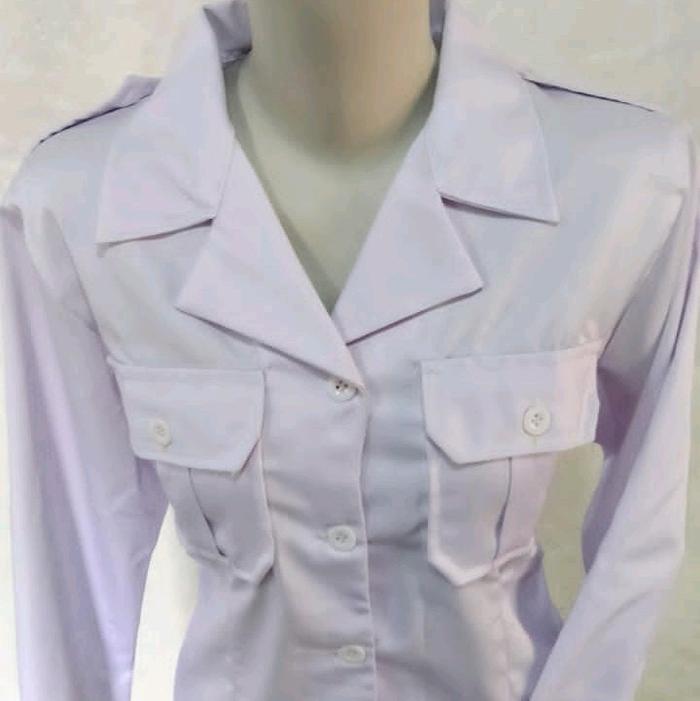 SERAGAM PDH PUTIH LENGAN TANPA KANCING KRAH REBAH BLASER BAHAN TEBAL ADEM