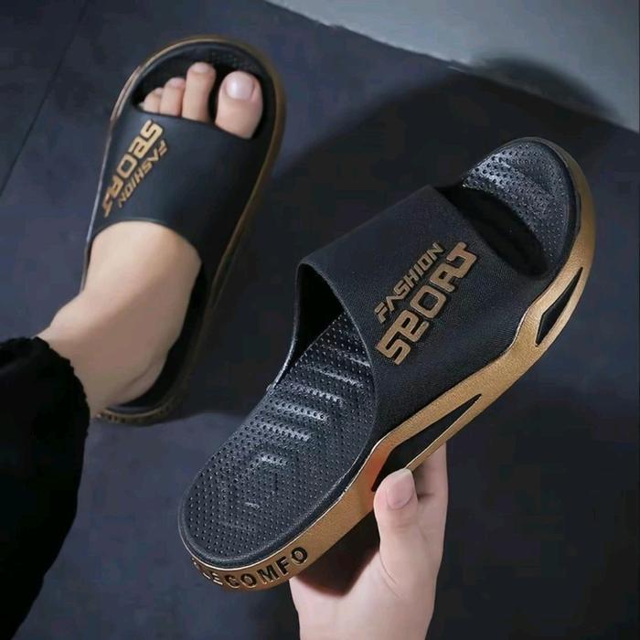 SANDAL SELOP COWOK SANDAL JELLY LAKI LAKI FASHION SRT SANDAL KARET PRIA TERBARU TRENDY SANDAL SLIDE KEKINIAN EMPUK LENTUR 33-44 SHOES OUTDOOR SLIPPERS SENDAL - HITAM, 39