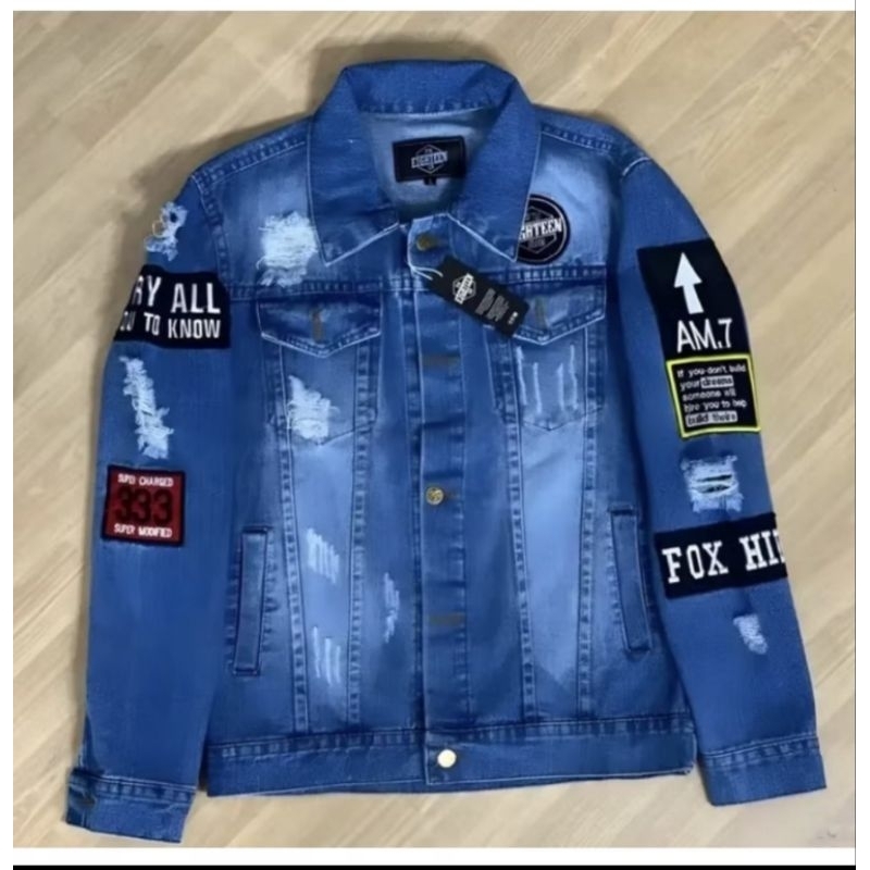 JAKET JEANS DENIM ANAK FULL BORDIER HIP HOOP BIRU KEREN STYLE UMUR 4 SAMPAI 9 TAHUN