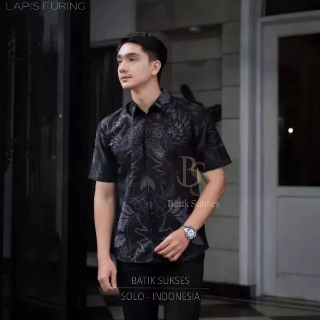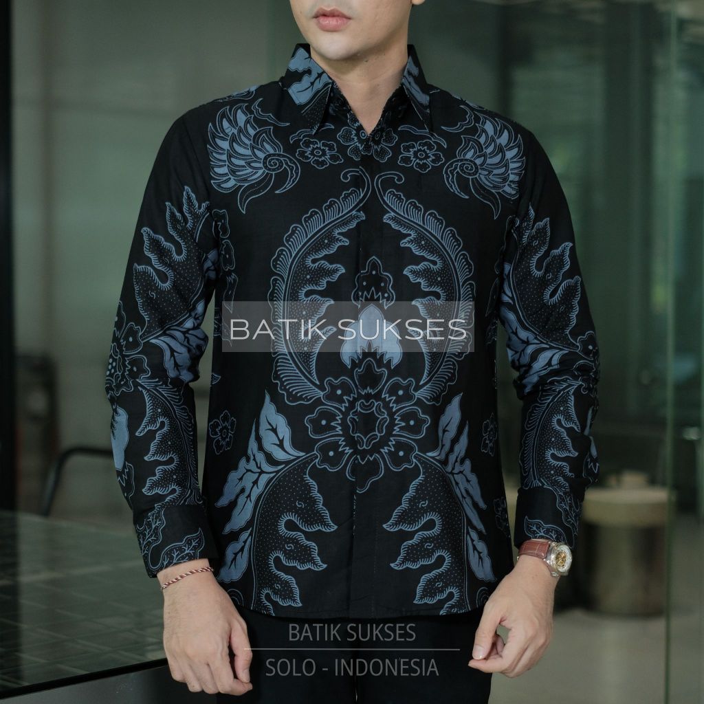 Kemeja Batik Pria Mahkota Abu Kemeja Lapis Furing Slimfit Lengan Panjang Katun Halus Primisima