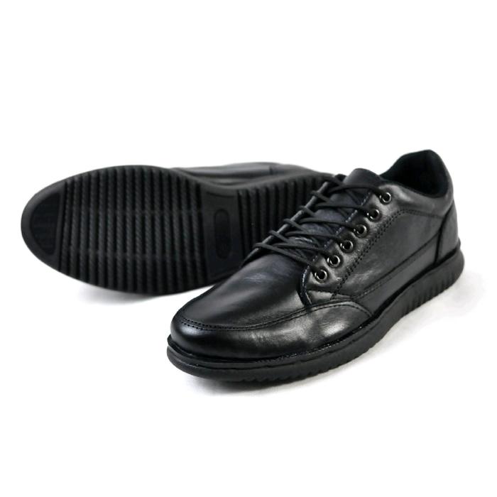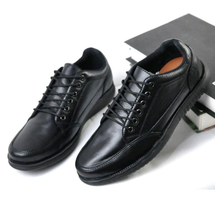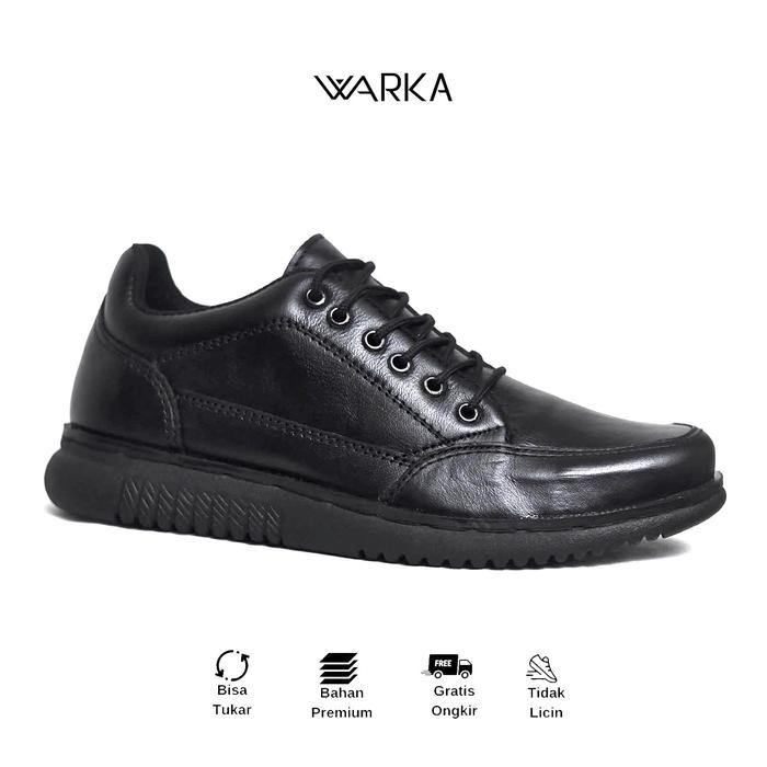 WARKA SYON - SEPATU PRIA FORMAL SNEAKERS ORIGINAL MUDA KEKINIAN TALI HITAM BISNIS SHOES KARET CASUAL PANTOFEL - HITAM, 39