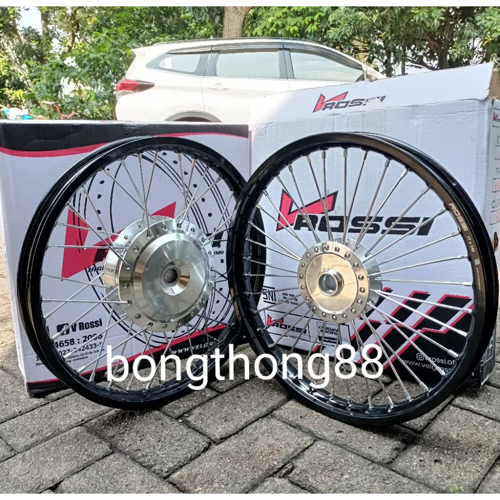 Paketan Velg Rossi Hitam Glossi /Hitam Drop Ring 17 Jari Jari Crome Stel Lurus 140 140 Beat Vario 125 Vario 150 Vario La