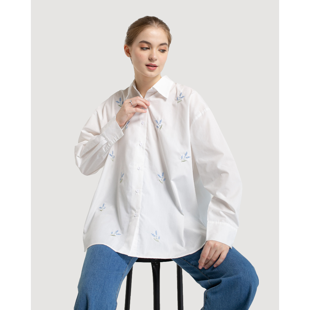 FLASH SALE SLIMAH Cotton Orchid Top Kemeja Oversized Bordir Wanita