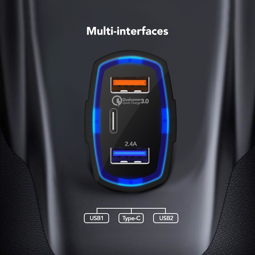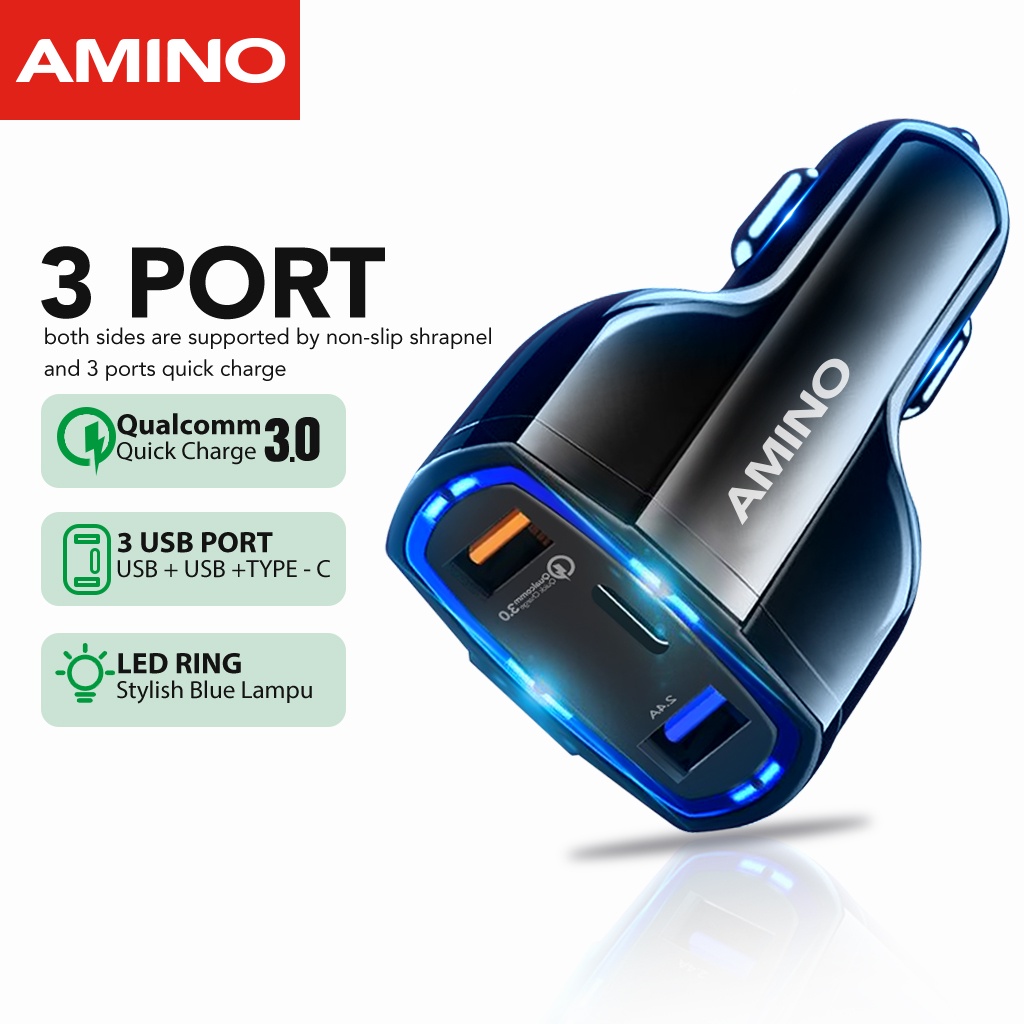 [Star] AMINO AM-C01 43W 30W Car Charger Fast Charger 3 Port USB QC 3.0 Type C Output Saver Mobil Lampu