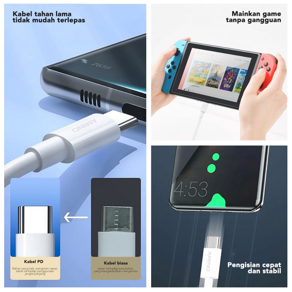 [Star] AMINO 2M 100W PD Type-C TO Type-C Kabel Data D Fast Charger Charger 5A C To C Kabel / USB C Quick Charge 4.0 / Su