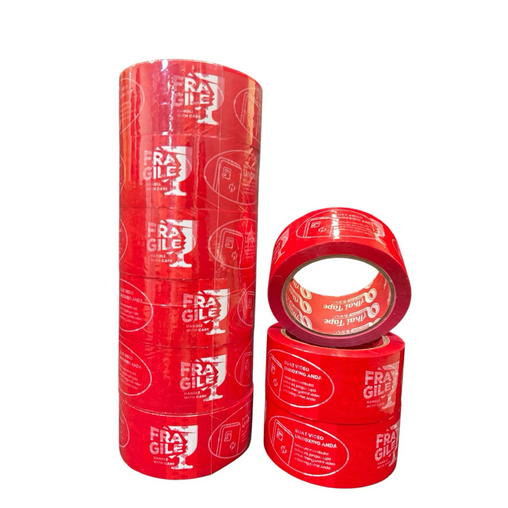 Lakban fragile unboxing 45mm x 100y l Lakban fragile 48mm x 90y