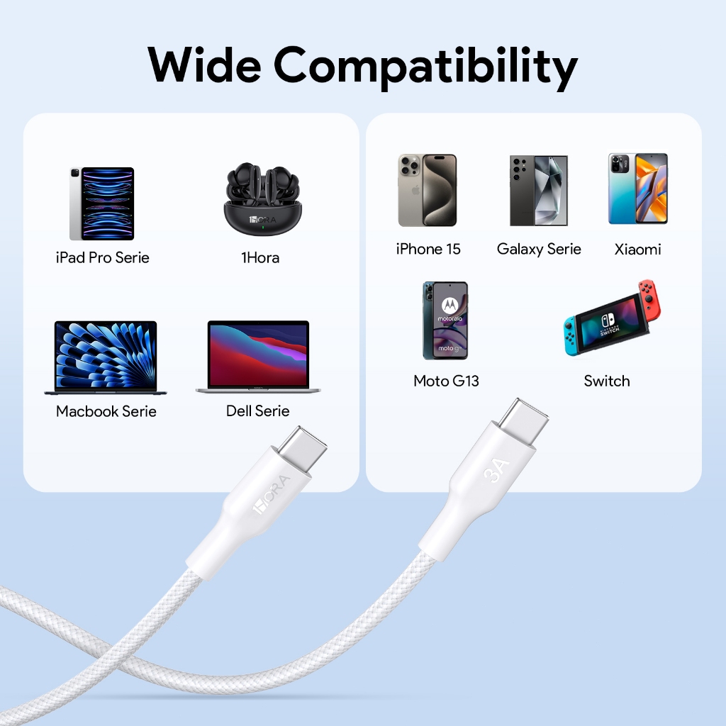 [Star] 1HORA 60W kabel data type c samsung Original Type C to C Super Charger 3A Cabel 1 meter length Hitam Putih