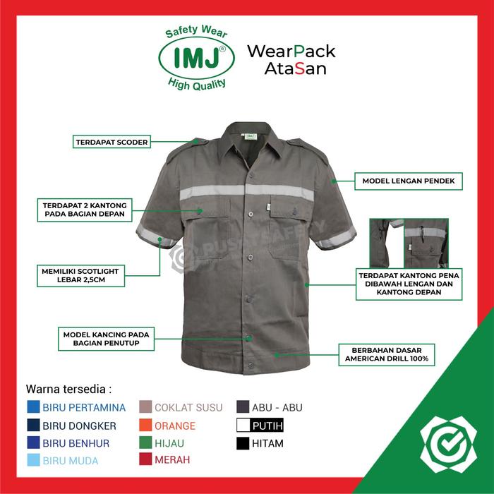 BAJU SAFETY ATASAN LENGAN PENDEK WEARPACK IMJ M-XL PRIA SERAGAM - ABU-ABU, M