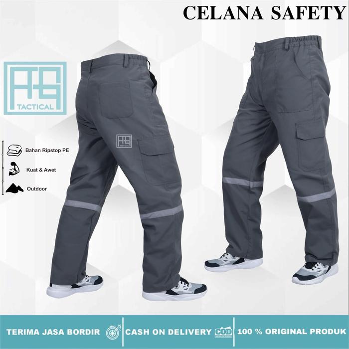 CELANA PRIA PANJANG WEARPACK SAFETY SCOTLGHT BAHAN RIPSTOP LY COCOK BUAT PEKERJA INDUSTRI TAMBANG, PERKAPALAN & PROYEK LAPANGAN HITAM NAVY - ABU, M