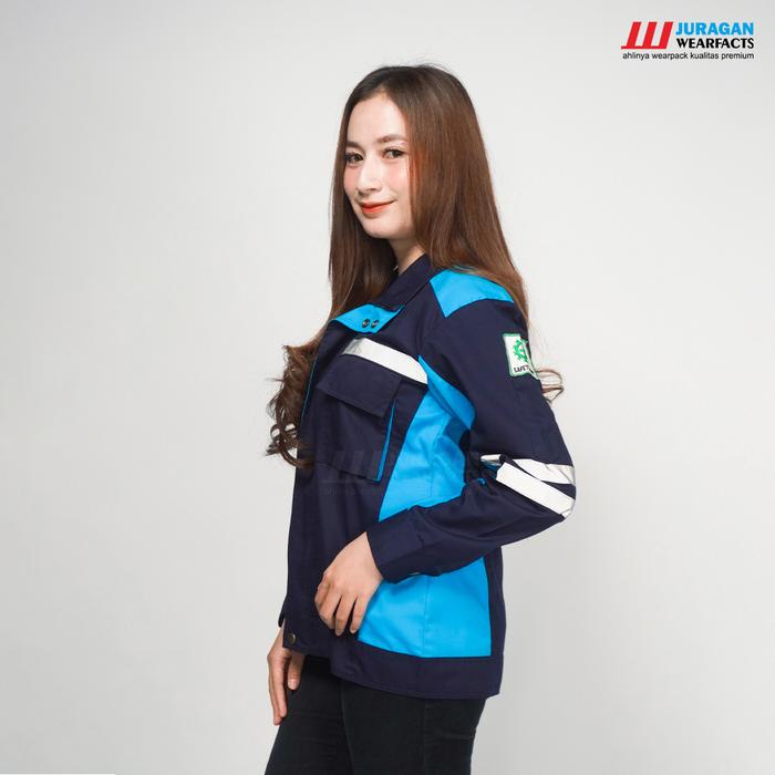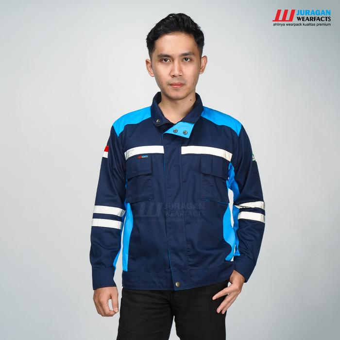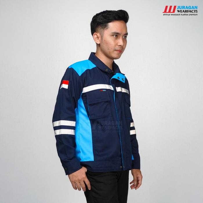 WEARPACK SAFETY SERAGAM BAJU KERJA LAPANGAN PANJANG PRIA WANITA MODEL SEMIJAKET WARNA BIRU TOSCA KOMBINASI BIRU NAVY ATASAN KATUN AMERICAN DRILL PENDEK HITAM - S