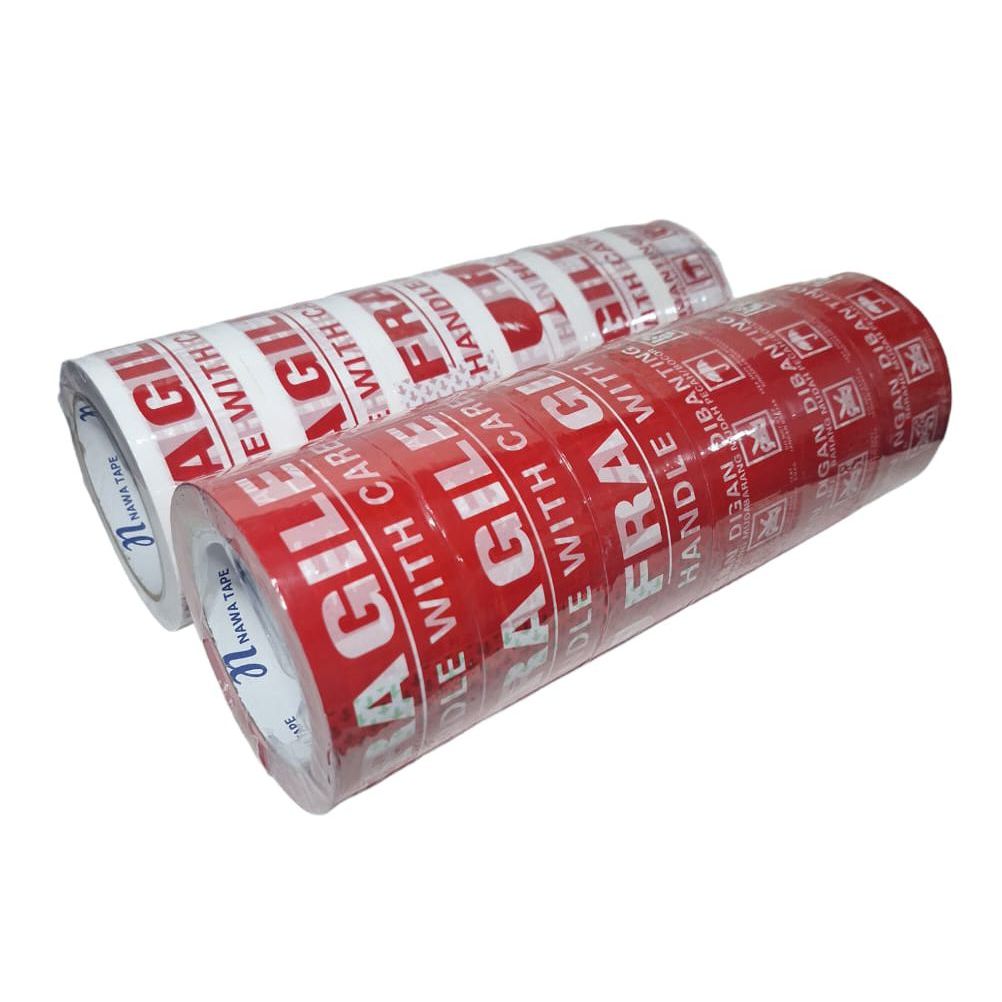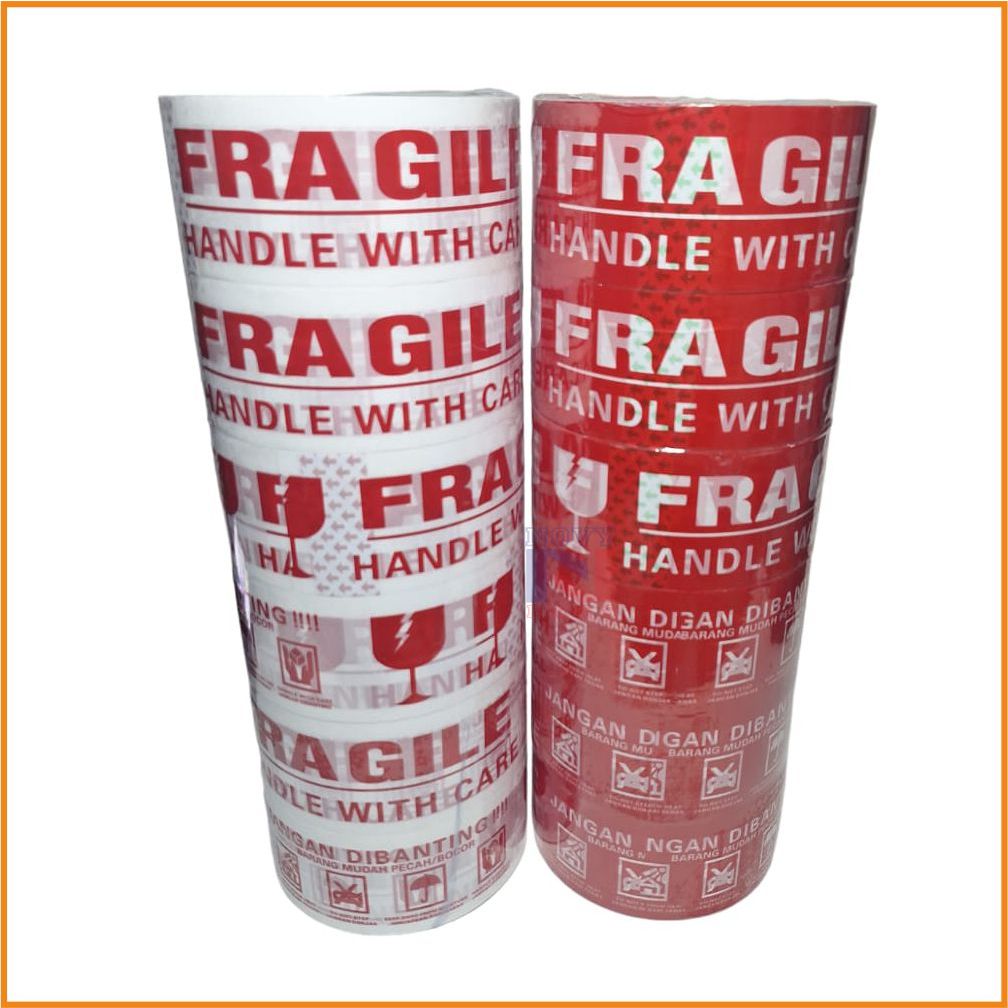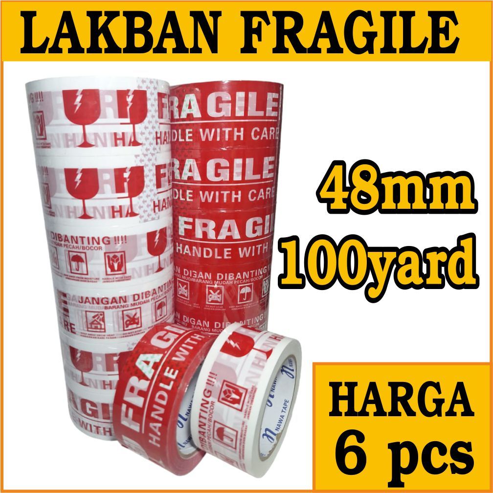 GROSIR HARGA MURAH 1 SLOP 6 ROLL, LAKBAN FRAGILE / JANGAN DI BANTING, 48MM X 100YARD KUAT & BERKUALITAS