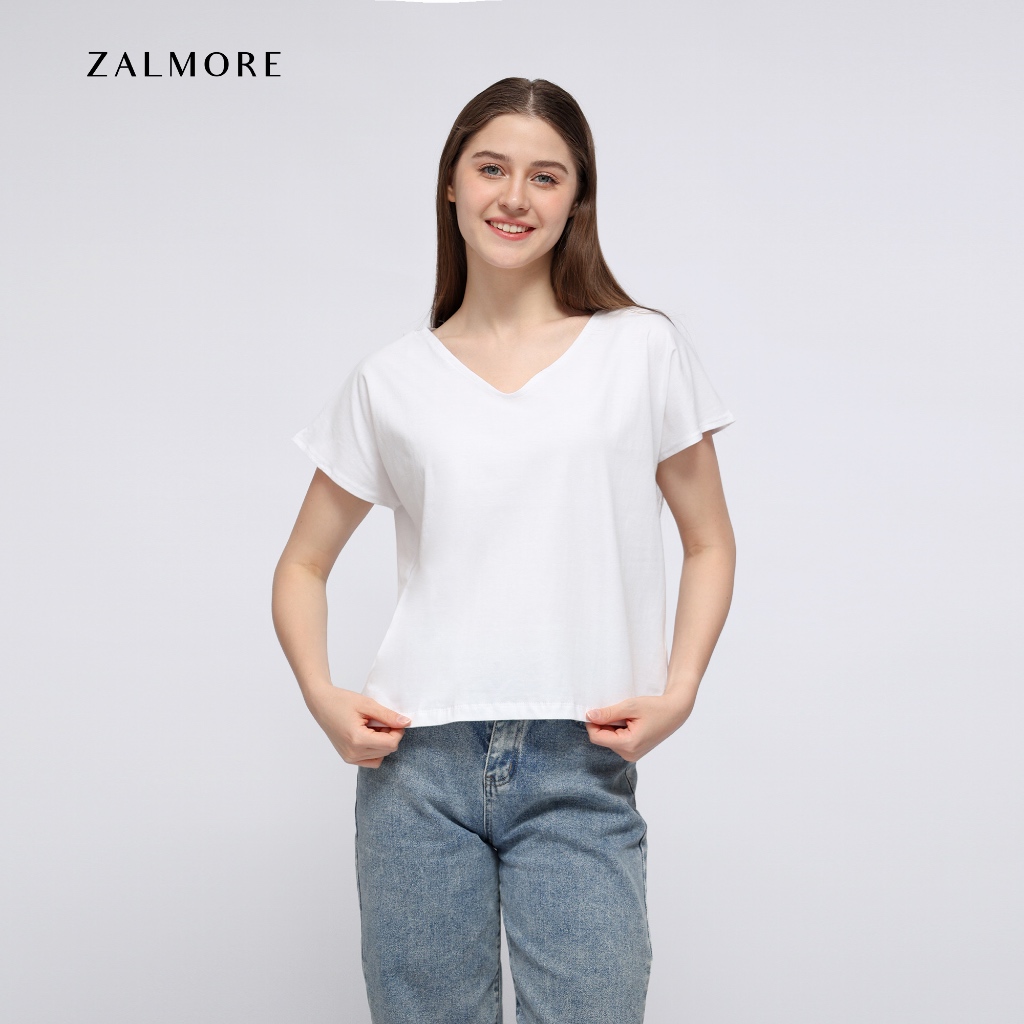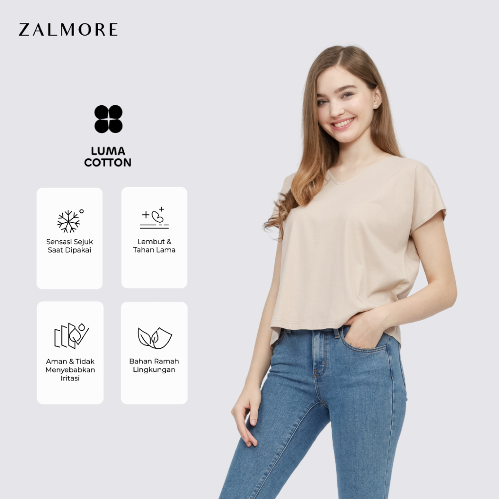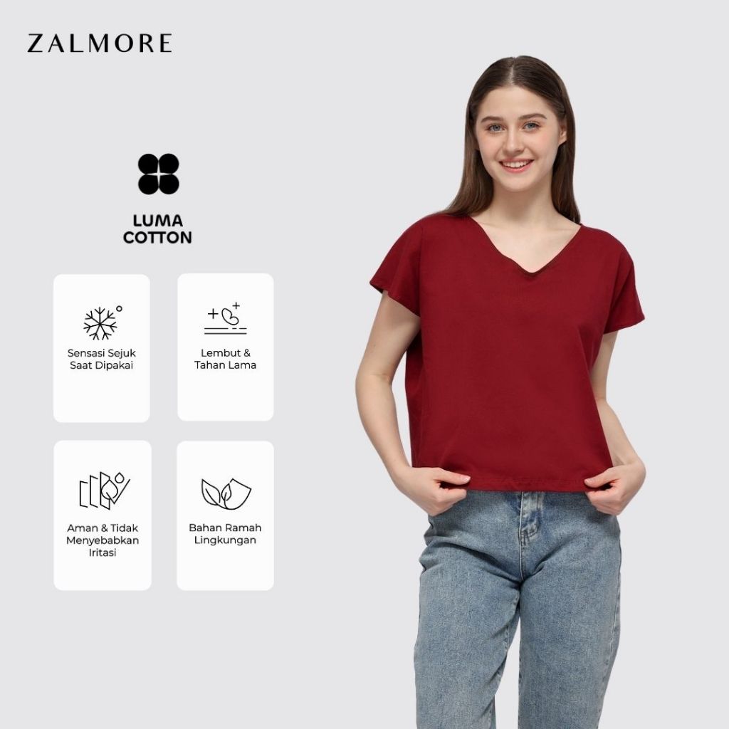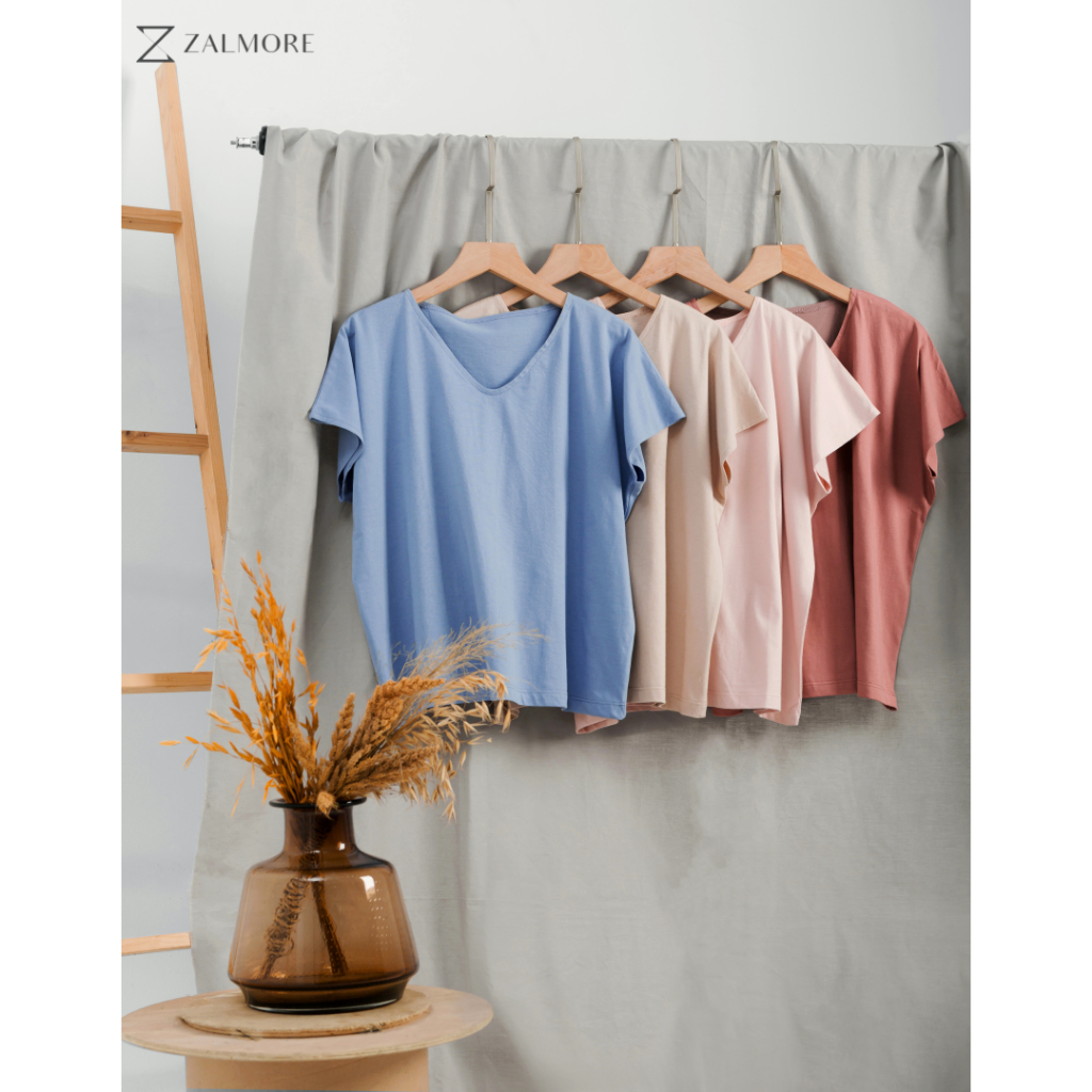 FLASH SALE Zalmore Women Vneck Loose TShirt Premium LUMA Cotton Kaos Wanita Lembut Ringan Sejuk Anti Nerawang