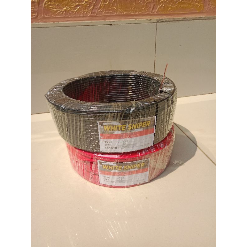 PAKET 1 PASANG 2ROLL MERAH &HITAM/ KABEL LISTRIK/KABEL TEMBGA KAWAT TUNGGAL/ KABEL NYA 1X2,5MM2 100YARD MERK WHITE SNIPER