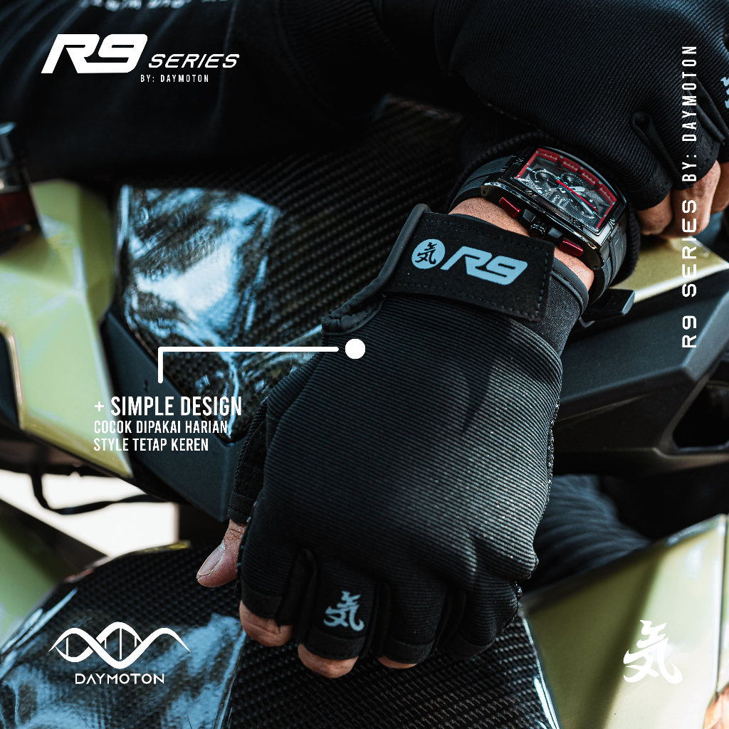Sarung Tangan Motor Daymoton Half Finger Series R9 Pria Wanita Anti Slip Adem Simpel Harian