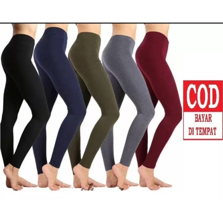 FLASH SALE Ninabobo CW002 Celana Legging Panjang Wanita Hitam Polos Soft Rayon All Size Leging Jumbo Hotpants