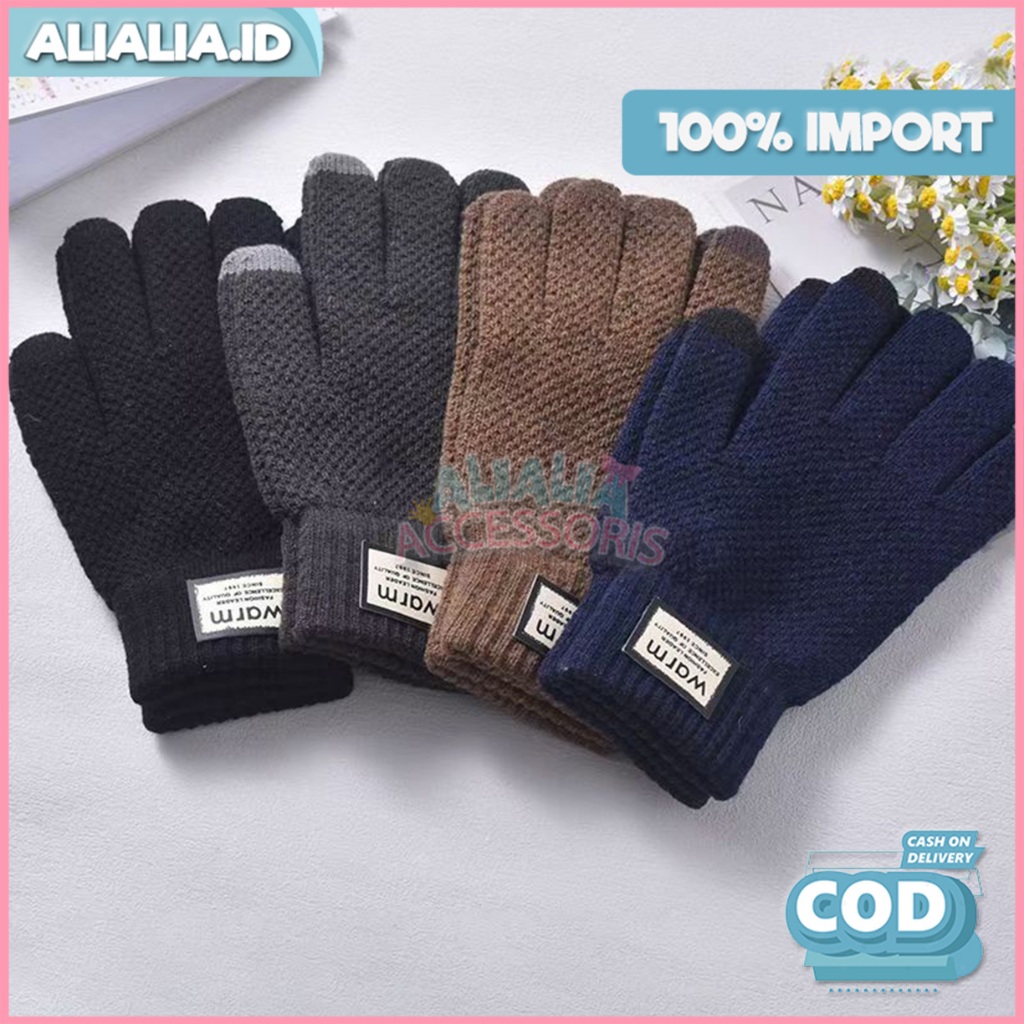 Sarung Tangan Winter Musim Dingin Wanita Pria Touch Screen Rajut Wool Tebal Gloves Unisex
