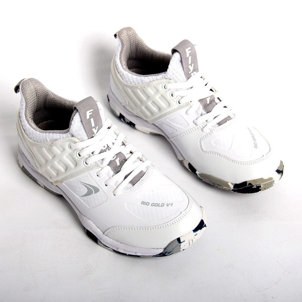 Flypower Rio kuning mengkilap V1 Sepatu Badminton White Lite Grey Tontowi Ahmad Series Free Shoes Bags