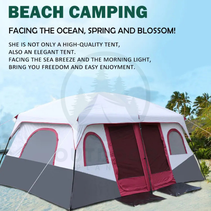 OUTDOOR Planet (GARANSI 1 TAHUN)Outdoor Tent 8-12 orang Tenda Berkemah Tenda Camping Ganda Tenda Pantai with Sunroof Tahan Air dan Tahan Sinar Matahari OP