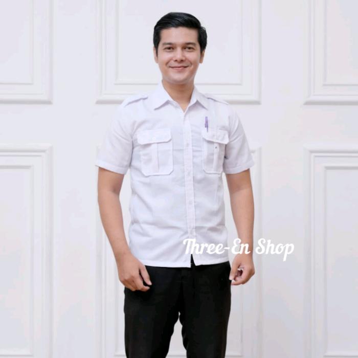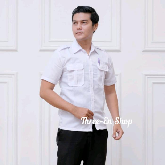 SERAGAM DINAS PRIA LENGAN PENDEK SERAGAM PABRIK BAJU SATPAM PUTIH PANJANG KERJA SIZE L WTAC PDK MERAH - LENGAN PENDEK, S