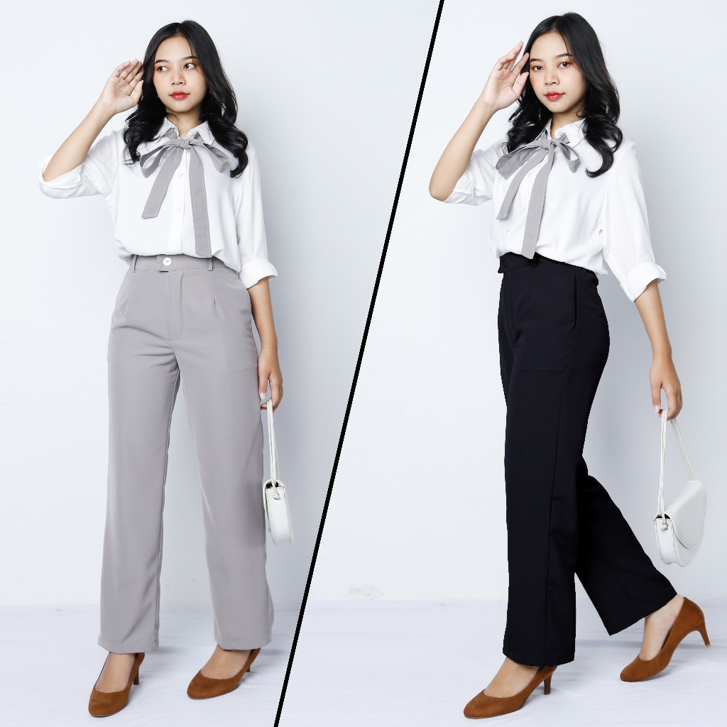 Alena Pants - Celana Kerja Wanita Kantor Daily Simple Pinggang Karet Belakang | Celana Kantor Wanita