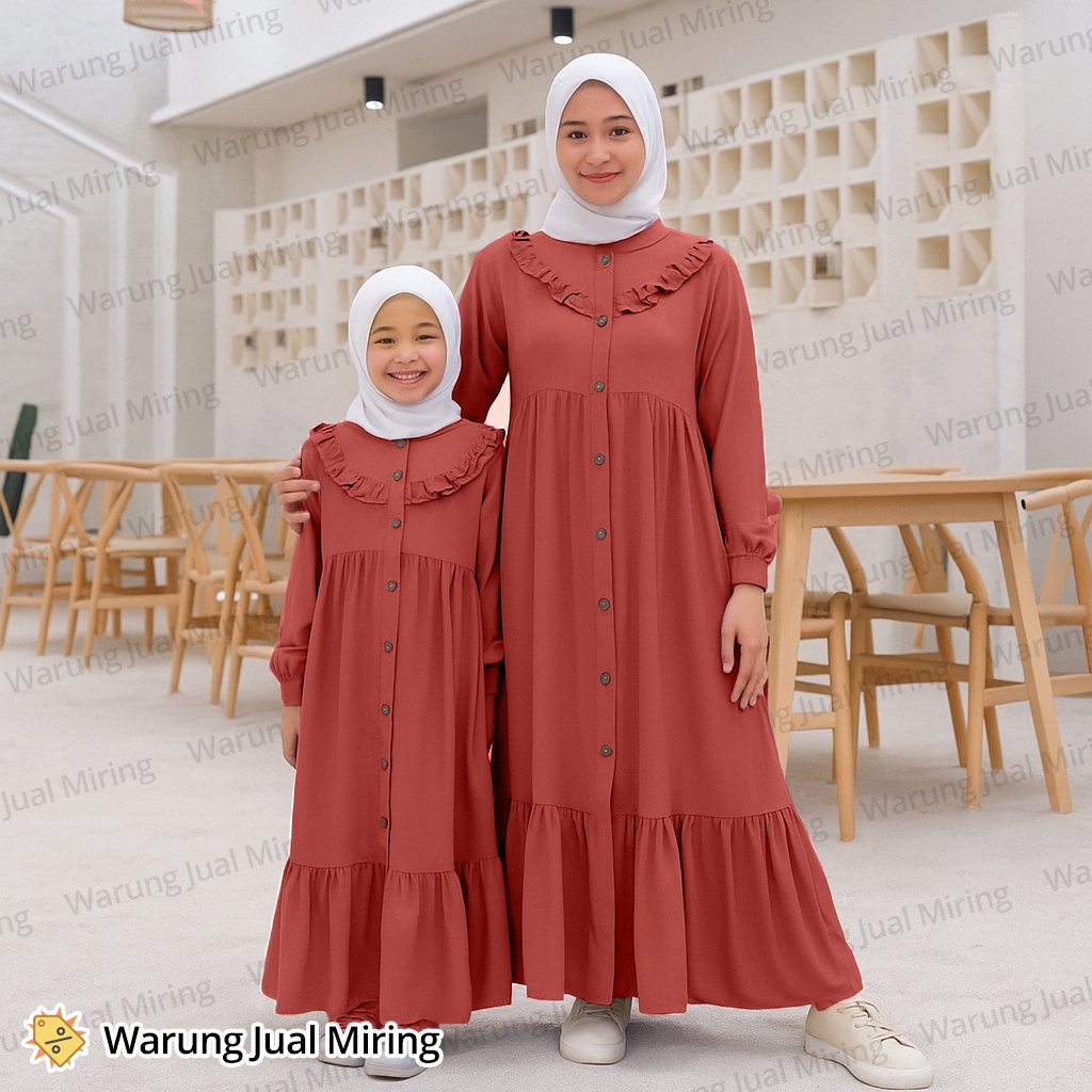 Baju Gamis Couple Ibu Anak Dewasa Crinkle Muslim Korean Style Putih Hitam Pink Dress Cewek Remaja Harian Polos Warna Pre