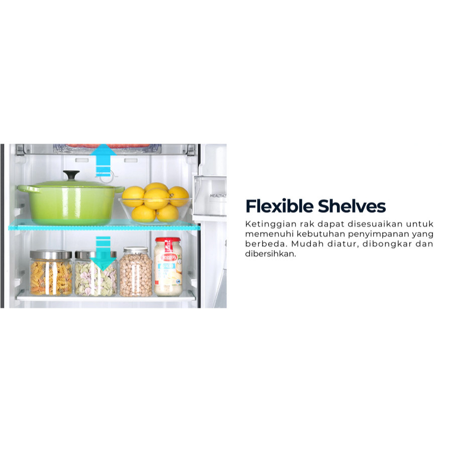 Kulkas 2 Pintu AQUA DTM 265 CBP DS Low Watt 260 Liter 48 WATT No Frost Garansi 7 TH
