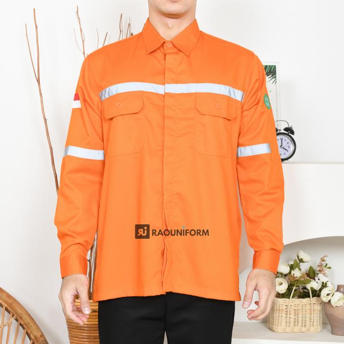RAOUNIFORM SERAGAM KERJA BAJU INDUSTRI ORANYE SAFETY LENGAN PANJANG KEMEJA PROYEK - ORANYE, S