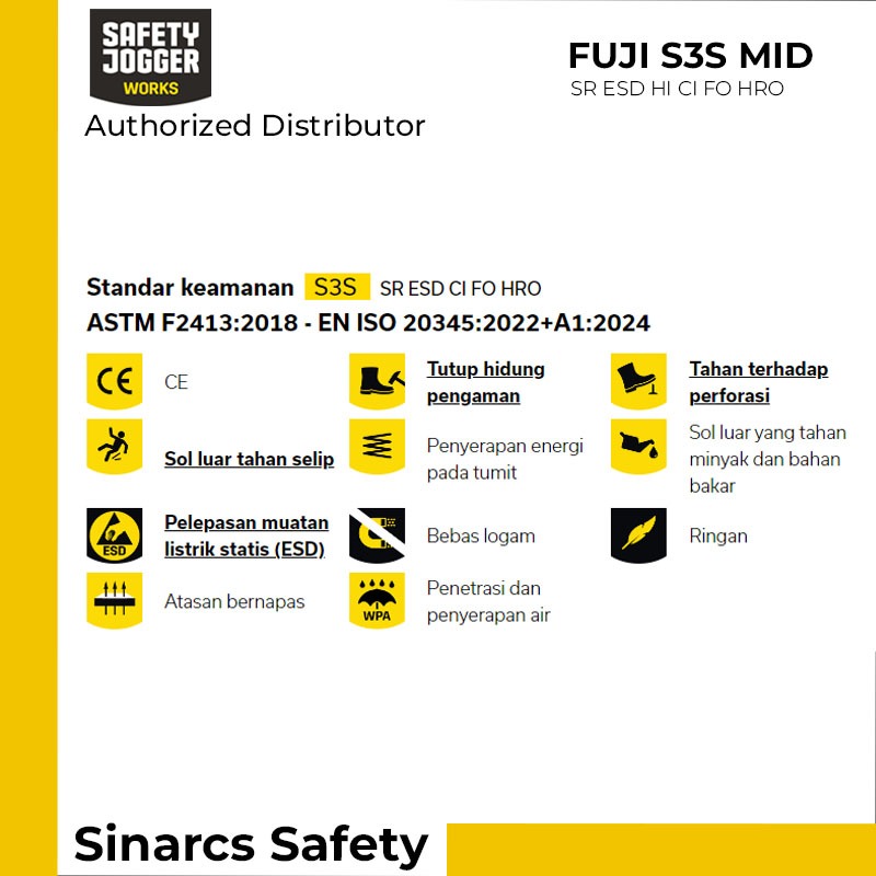 Sepatu Safety Jogger FUJI S3S Mid - Black / Hitam
