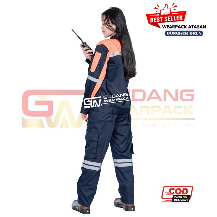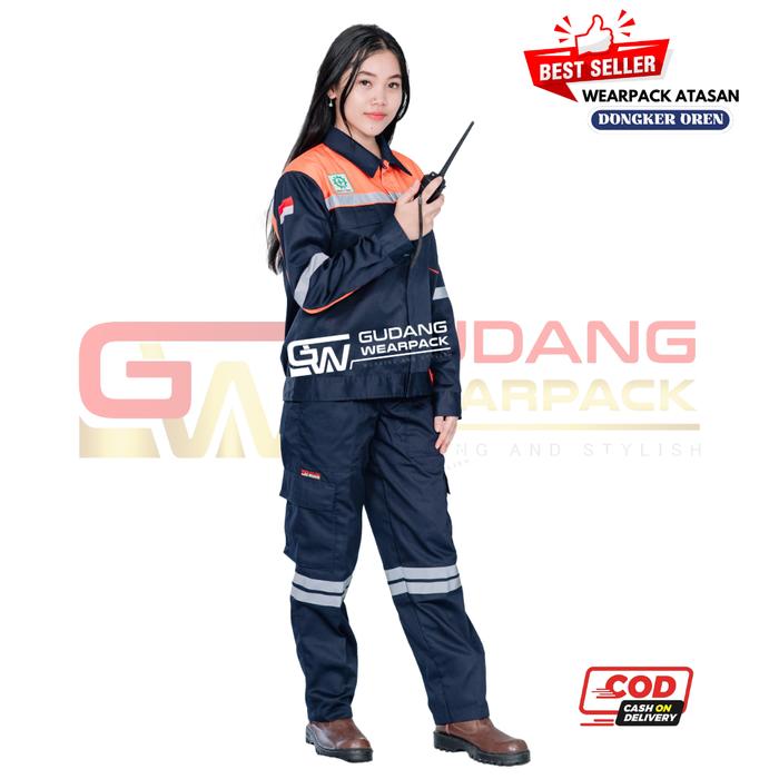 WEARPACK ATASAN KERJA LENGAN PANJANG WARNA DONGKER KOMBINASI OREN - DONGKER OREN, M