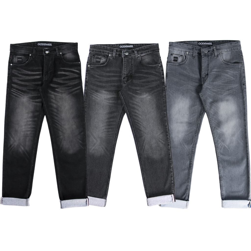 GodsWeel Celana Pria Panjang Selvedge Slimfit Meral Jeans Longs Black Indigo Blackjazz Stretch