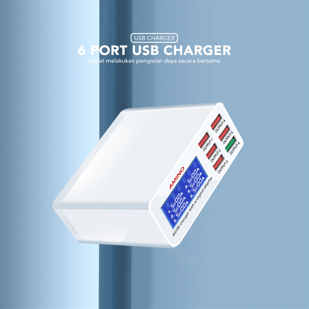 [Star] AMINO 40W 6 USB Port Multi Port Charger QC 3.0 Fast Charger LED Function Adaptor Power Kabel