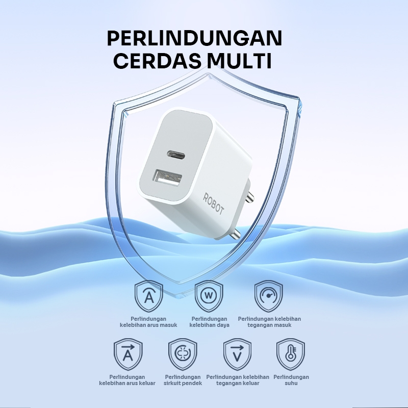 [Star] ROBOT Charger Fast Charging Dual Port 12W with Type C Cable 2.4A Adaptor Kepala Charger Adaptor Kepala Charger Ip