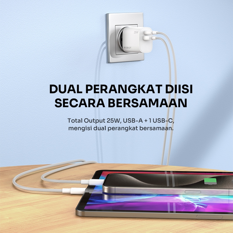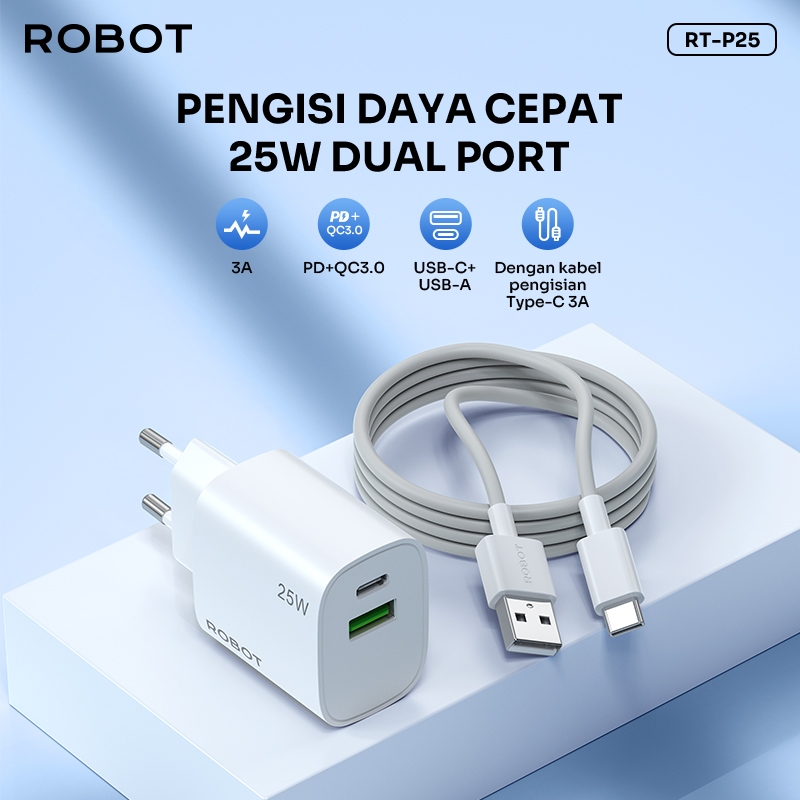 [Star] ROBOT Kepala Charger Quick Charging 3.0 USB A To Type C Dual Output 3A 25W RT-P25 Original - Garansi 1 Tahun