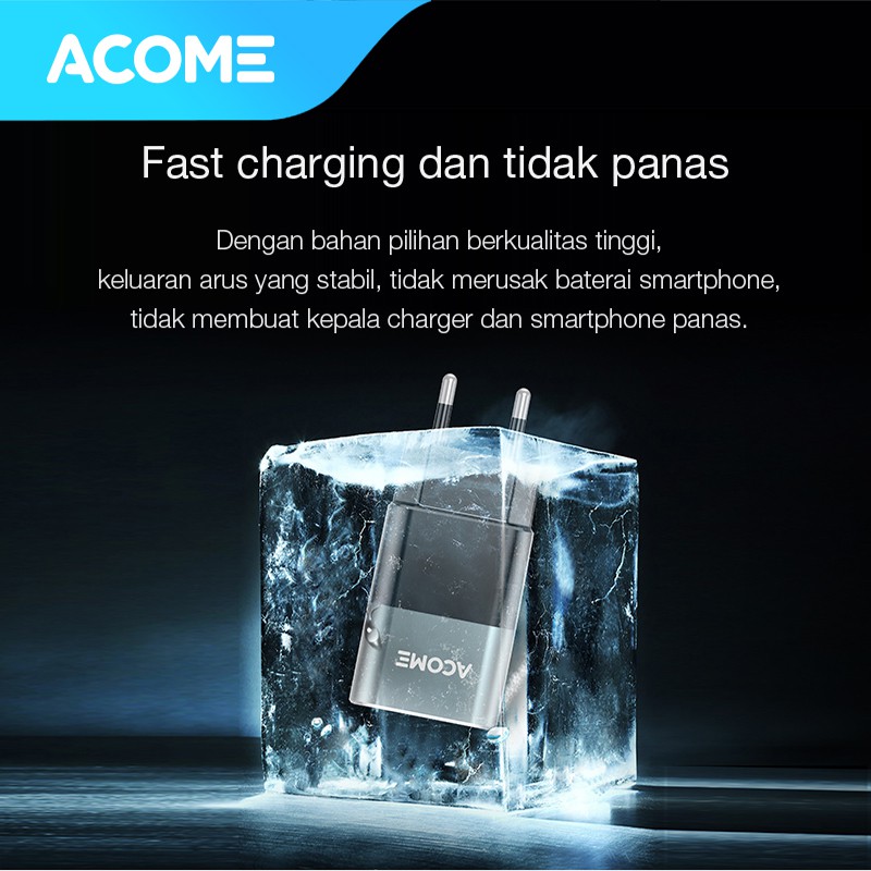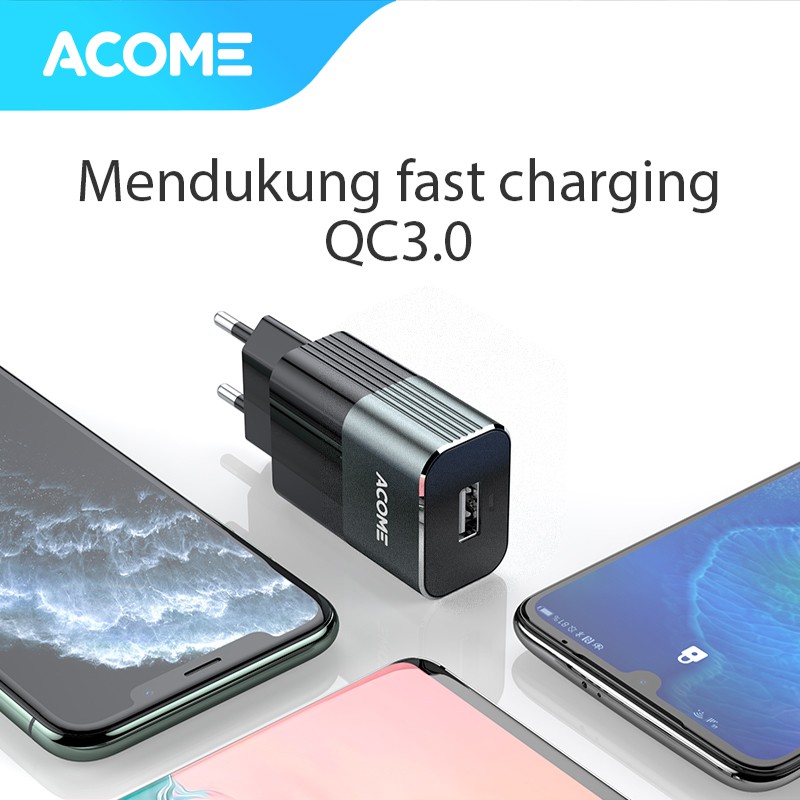 [Star] ACOME Charger QC3.0 AiC Fast Charging (AC01) Free Kabel Data Micro USB iPhone Type-C (AK Series) Ori