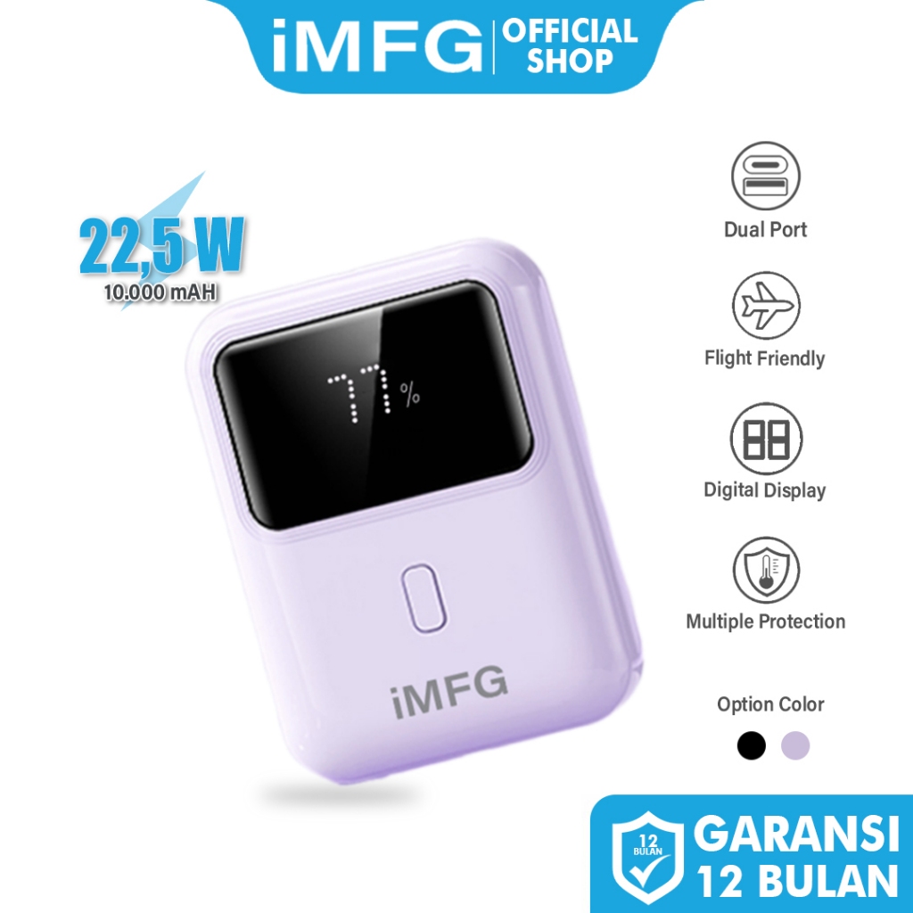 [Star] iMFG I-PD102 Mini Powerbank 10.000 MAH With PD 22.5W Dual Port USB & Type C Fast Charging