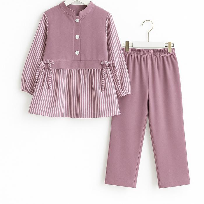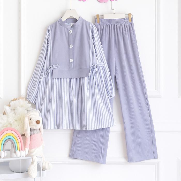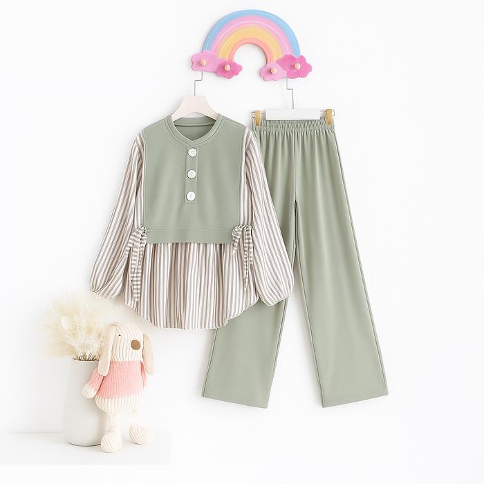 SETELAN ANAK PEREMPUAN KEKINIAN ZASKIA SET BAJU ANAK WANITA VIRAL TERBARU DENGAN BAHAN KNIT MIX KATUN MOTIF SALUR PREMIU