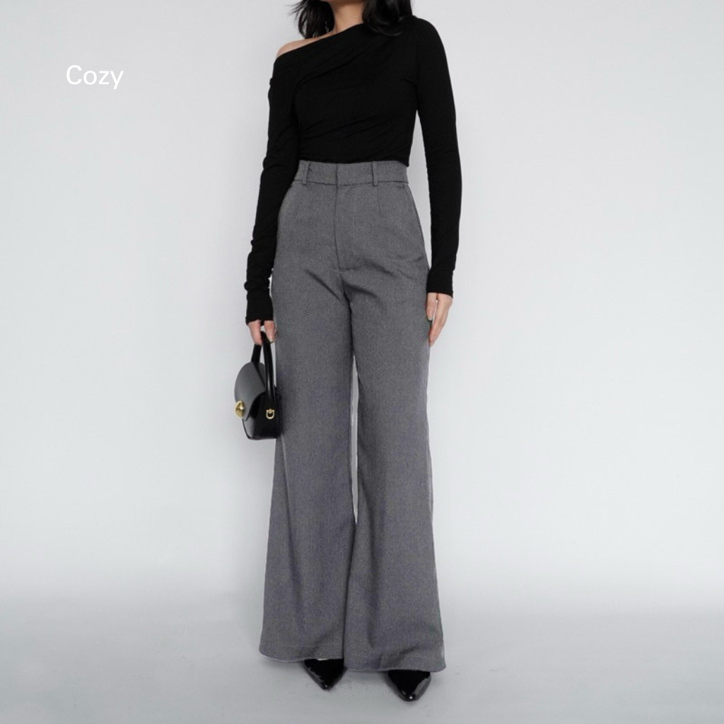 Cozy - Celana Panjang Wanita Kekinian Celana Bahan Kerja Kantor Wanita Highwaist Loose Pants