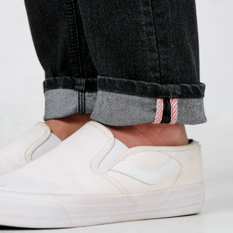 RoosterDenim Celana Jeans Pria Skinny Biker Motor Knee Rips Black Denim Selvedge