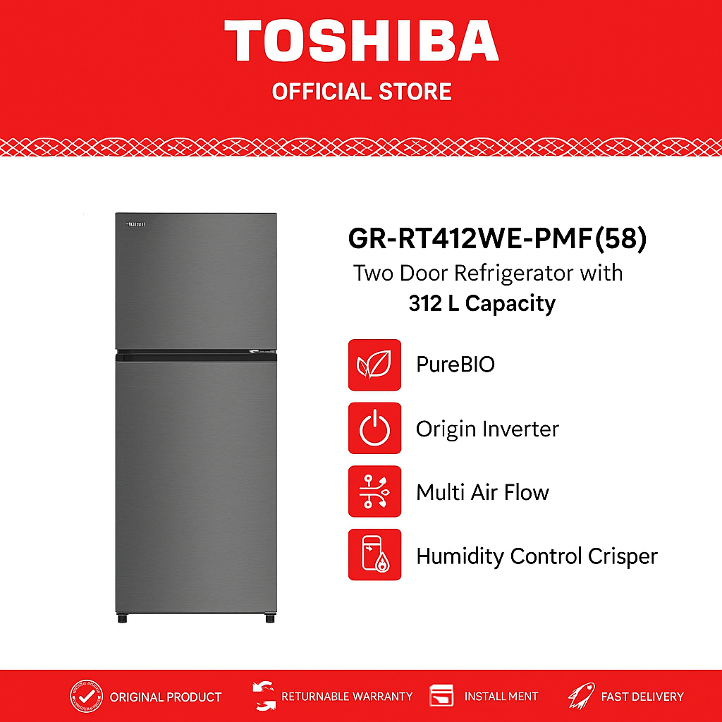 TOSHIBA Kulkas 2 Pintu GR-RT412WE-PMF(58) Kapasitas 312L -Inverter Refrigerator Two Doors