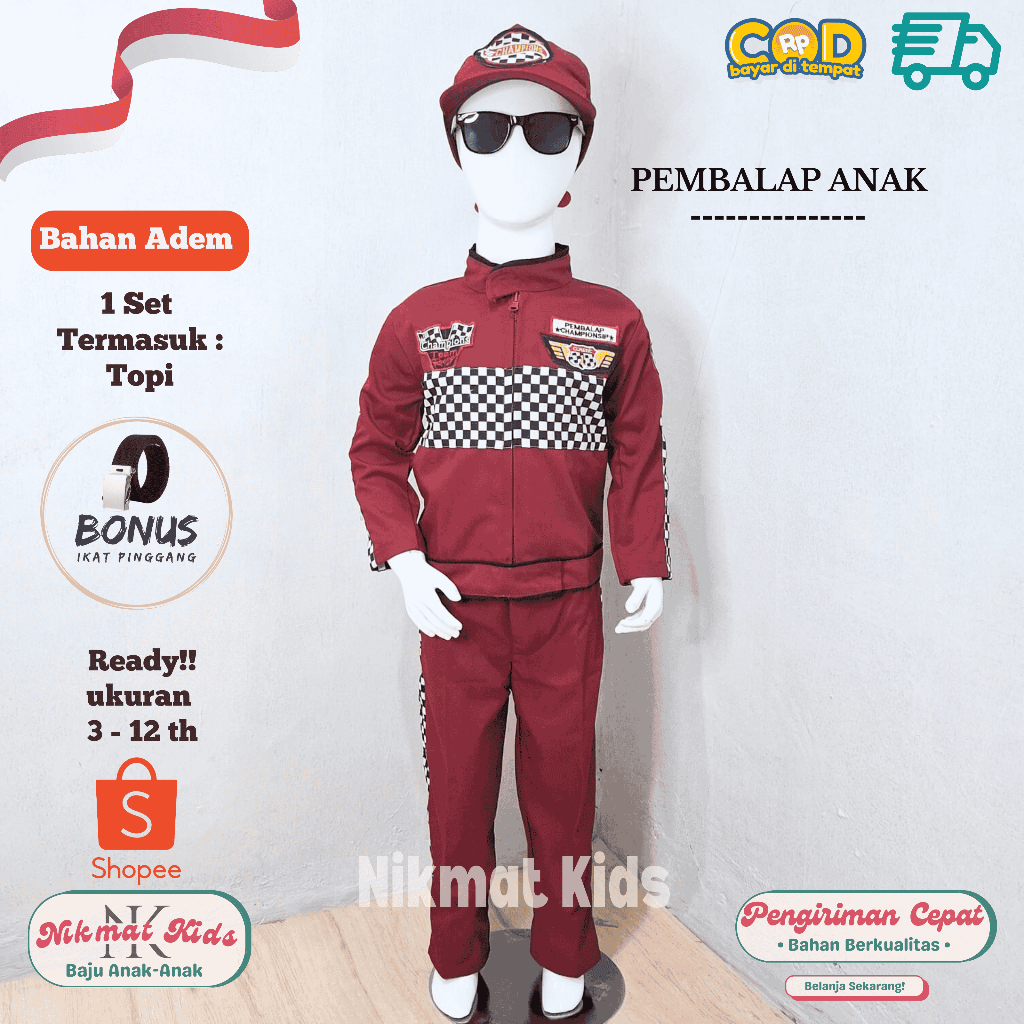 Baju pembalap anak laki laki baju balap anak kostum pembalap mcqueen seragam pembalap kartinian tk