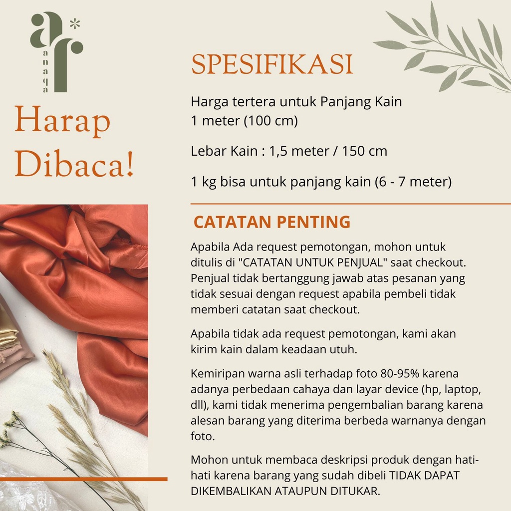 Kain Satin Silk Velvet Premium Bahan Dress, Dalaman, Bridesmaid, Kebaya 1 Meter