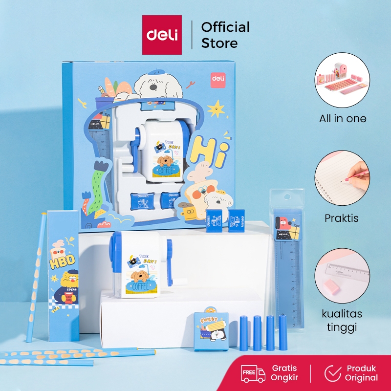Deli Set Alat Tulis Kado / Stationary Gift Set 5 in 1 Pink Biru VG52