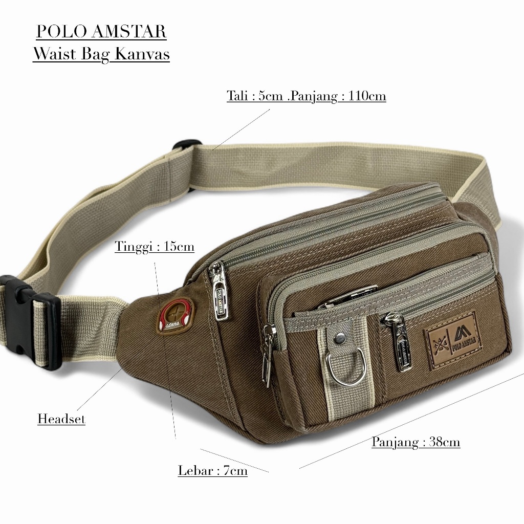 Tas Pinggang Unisex Polo Amstar Waist Bag Casual Selempang Pria Wanita Sling Bag